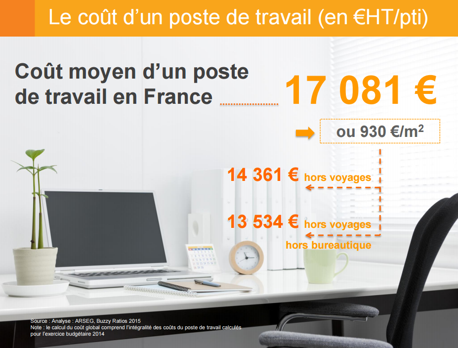 - une légère hausse du coût moyen annuel HT d’un poste qui s’établit désormais en France à 17.081 euros toutes dépenses comprises soit 930 €/m² (+ 3,5 %).
