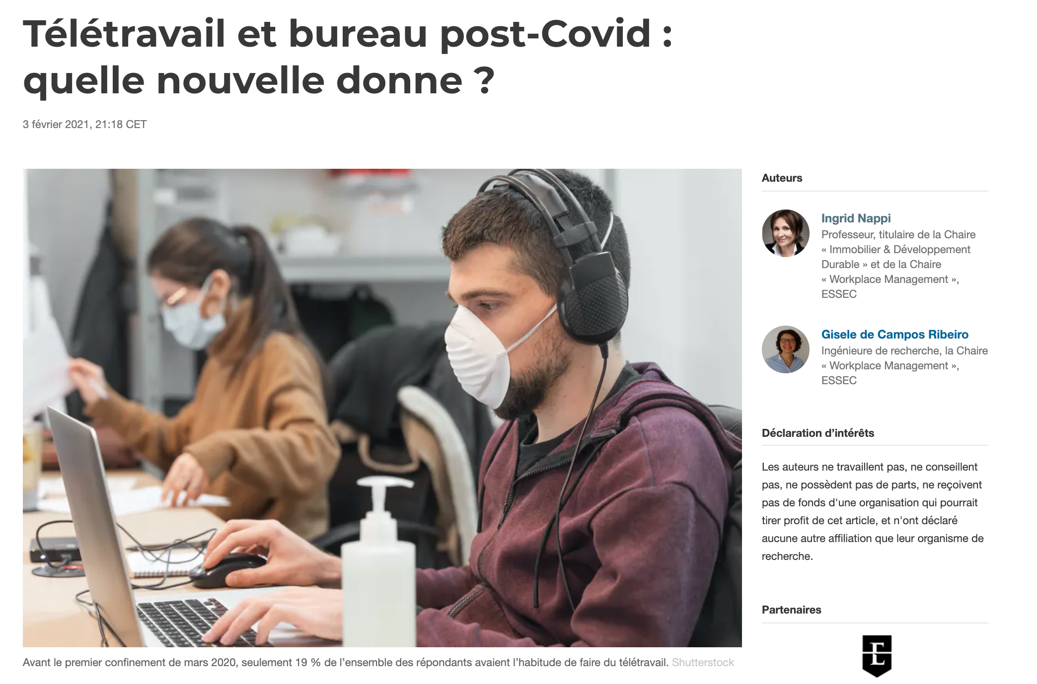 Lors notre dernière étude, menée au sein de la Chaire Workplace Management de l’Essec Business School, nous avons évalué l’impact de la crise sanitaire et de l’expérience du télétravail sur les attentes de 2643 employés de bureau[1] par rapport à leur espace de travail. Retrouvez dans notre article publié par The Conversation France les principaux enseignements de cette étude.