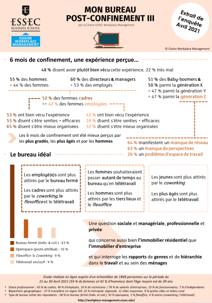 Retrouvez les principaux résultats de notre troisième enquête dédiée au bureau post-confinement menée au sein de la Chaire Workplace management de l’ESSEC et publiés par le site The conversation.